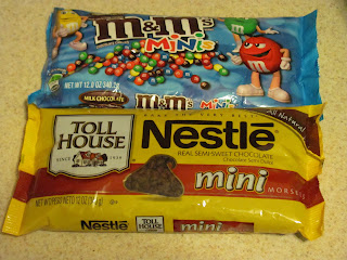 You will need 12oz mini M&M's and 12oz mini chocolate chips. |